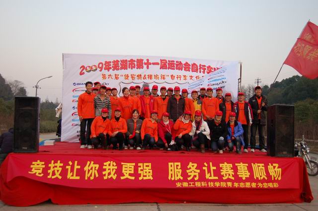 12月6日,芜湖市第十一届运动会自行车比赛暨第六届“捷安特&禧玛诺”自行车文化节如期在市神山公园隆重举行,本次活动主题是“创造自行车新生活-挑战自我 创造骑迹”。应大赛组委会邀请,纺织服装系精心组织了由系青年志愿者服务队和系学生会成员组成的31人的大学生志愿者服务队,为比赛提供全部的志愿服务和后勤保障工作。