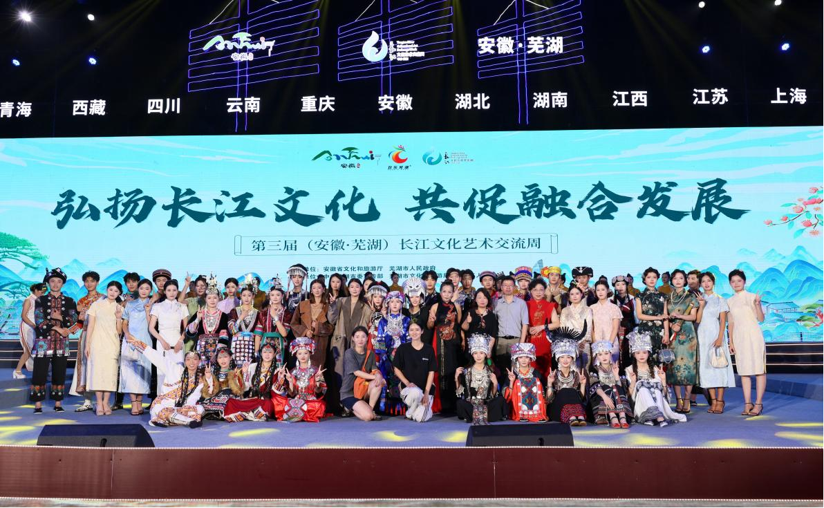 为精准呈现长江流域服饰的文化内涵,学院组建了由专业教师牵头的主创团队,从服饰历史考据、台步编排到舞台呈现进行全流程指导。师生们查阅大量文献资料,深入研究流域各地各民族服饰特色,将芜湖浆染技艺等本土非遗元素与现代时尚理念相融合,在演出中实现了“历史与现代的对话”。