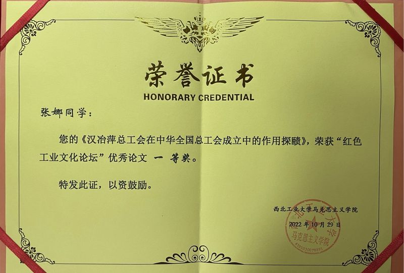 汉冶萍公司是近代早期中国最大的钢铁联合企业,汉冶萍总工会是当时全国最大的产业工会组织。张娜的论文探讨了汉冶萍总工会的成立,及其在中华全国总工会成立中所发挥的作用,有一定的理论意义,获得优秀论文一等奖。