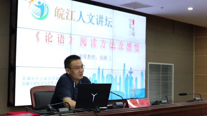 本网讯 9月24日,马克思主义学院与芜湖市社科联联合举办皖江人文论坛。论坛邀请张刚教授作题为“《论语》阅读方法及感悟”的社科普及讲座,学院教师代表、全体研究生及人文素质中心学生代表参加。