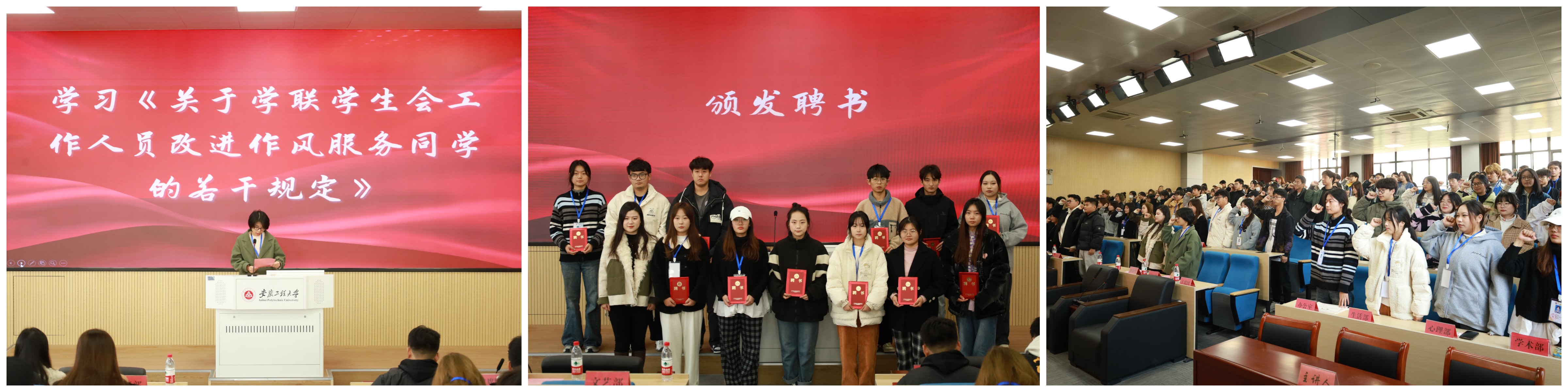 会上院团委学生副书记闫梦雅带领全体成员学习《关于学联学生会工作人员改进作风服务同学的若干规定》,开展学生干部廉洁作风建设警示教育。余润佳宣读本届团委学生会干部名单,田潇濛颁发聘书,并合影留念。最后,全体学生干部进行宣誓,奏唱共青团团歌。