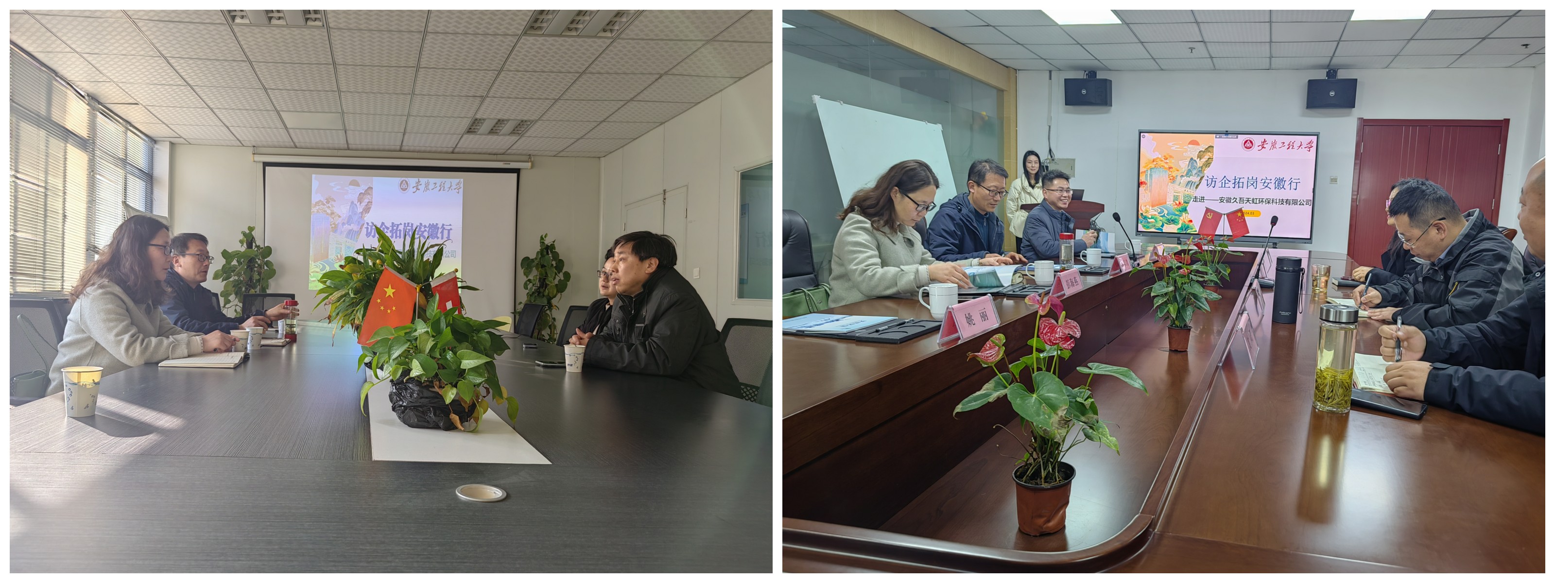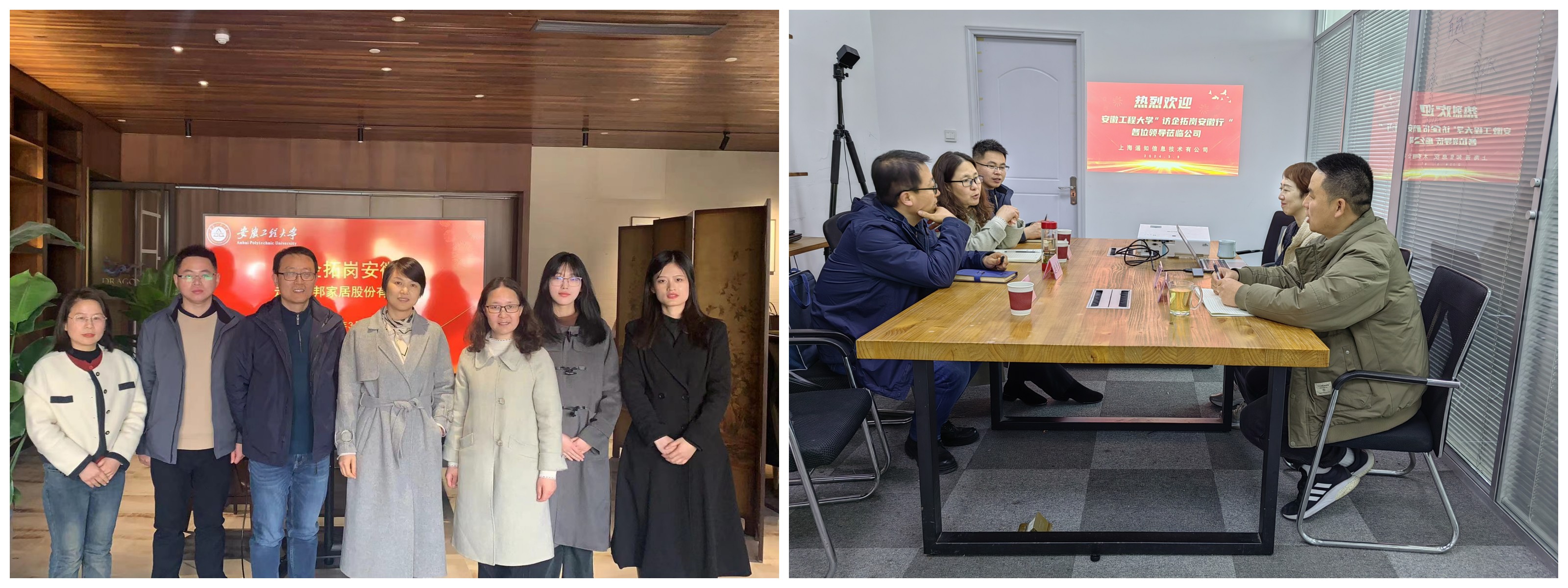 为深入贯彻落实党中央、国务院关于高校毕业生就业工作的决策部署,扎实开展“人才安徽行”系列活动,以高质量充分就业为目标,进一步促进我校更多毕业生投身现代化美好安徽建设,3月8-9日,设计学院党委副书记彭海燕、生物与食品工程学院党委副书记王彦青等一行4人前往志邦家居股份有限公司、上海遥知信息技术有限公司、合肥国肽生物科技有限公司以及安徽久吾天虹环保科技有限公司开展访企拓岗专项活动,共商校企深度合作。