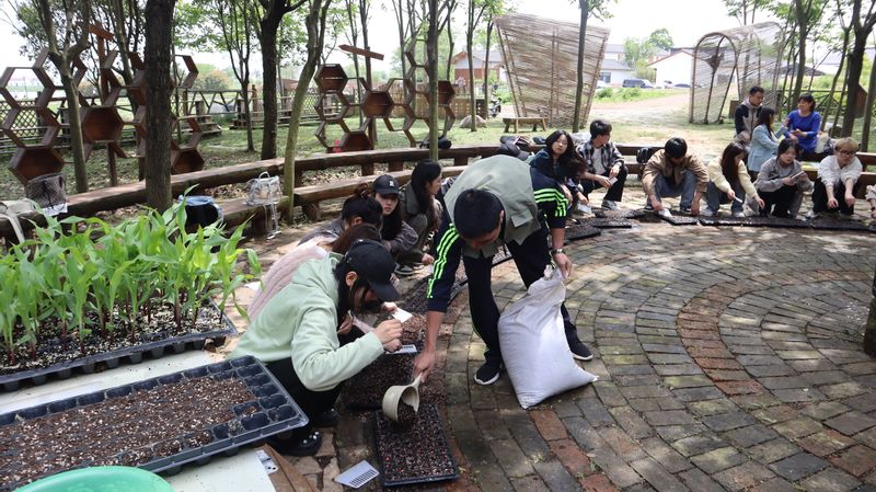 为培养学员们的劳动意识和实践能力,培训班组织部分学员代表前往设计学院校外劳动教育基地开展劳动教育活动。学员们参与了穴盘育苗和环保酵素制作等劳动实践项目。这些劳动实践活动不仅让学员们感受到了劳动的乐趣和价值,更让他们深刻体会到了劳动人民的伟大和辛勤付出。